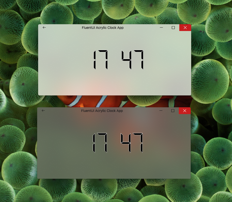 在Windows 10或MacOSX下,组件使用本机API将材质笔刷与桌面的模糊背景混合。